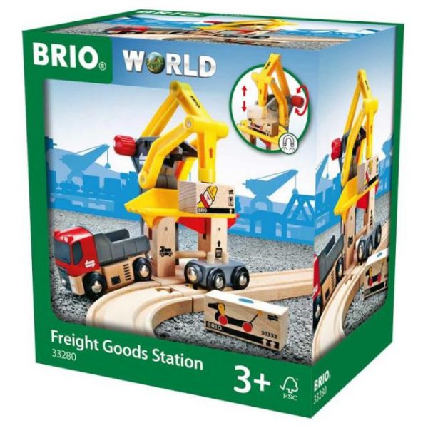 Lift and Load Action! Take the load off the wagon with the magnetic arm. Drop the load on the chute and press the button to slide it down onto the truck. Off it goes to deliver the cargo! Includes truck, wagon, load, and ramp track. For ages 3 and up Brand: Brio Department Code: 3149