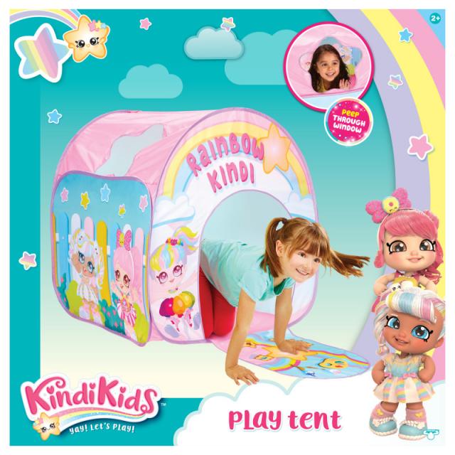 The Kindi Kids – The Cutest Pre-Schoolers Around! The Kindi Kids are the cutest pre-schoolers around! These adorable little girls are full of fun and play, and they love attending Rainbow Kindi. A place where every day is about playing together and making friends!Join the Fun with Marsha Mello, Donatina, and Rainbow Kate Pop up. Peep out. Play. Join Marsha Mello, Donatina, and Rainbow Kate for a day of play in this fun-packed pop-up Kindi Kids Rainbow Play Tent. Fold down the door and create some games on the printed play mat or peep out of the star window in the roof for some peek-a-boo giggles.Key Features Colourful pop-up design Fold-down door play mat Peep-through star window Easy to set up and store away Perfect for indoor and outdoor adventures Little girls will love this vibrant Kindi Kids play tent. Ideal for adventures inside and out, this Kindi Kids play tent is packed with fun features, ensuring hours of entertainment. Whether they’re having fun in the house or playing in the garden, fun and giggles with their favourite Kindi Kids are guaranteed. For ages 2 and up Brand: Kindi Kids Department Code: 3134