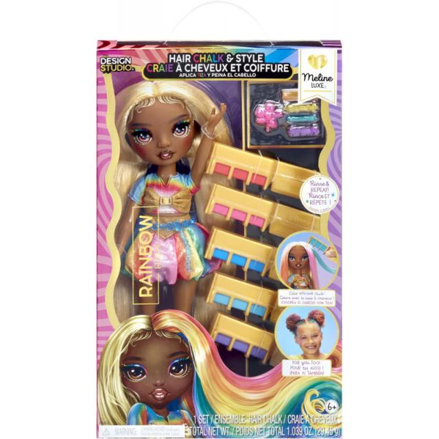 Rainbow High Hair Chalk & Style Meline – Rainbow & Gold 27cm Doll. Washable Rainbow Hair Chalk, Colour, Style, Play, Rinse & Repeat. Great Gift for Kids 4-12+• HAIR STYLING KIT. The easy-to-use kit comes with 5 WASHABLE hair chalks in rainbow colours, 4 hair chalk combs and 5 hair clips that you can use on your doll and you.• COLOUR WITH HAIR CHALK.Customise your Rainbow High doll’s hair and your own with 5 washable rainbow hair chalk.• FOR YOU TOO. Colour your hair too.Note: colour will be more vibrant on lighter hair • RINSE & REPEAT. The Washable hair chalks make it so easy for you to do it over & over again.Just wash the hair in soap + water, let dry and start creating again • PLAY. When you’re done colouring and styling, she is ready to create stories with. • BEAUTIFUL RAINBOW & GOLD DOLL. Meline is dressed in her signature GOLD from head to toe, plus a lot of rainbow colours to match the hair chalk. She has gorgeous, detailed features in her fashion, beautiful long GOLD hair, long eye lashes and glass eyes.• GIFTABLE PACKAGING. The package makes for a perfect gift, it’s a doll + hair styling kit for your doll and you. This playset inspires creativity and imagination. • WHAT’S INCLUDED. 27cm Fashion doll with complete doll outfit and hair styling kit – 4 hair chalk combs, 5 washable hair chalk in rainbow colours, 5 hair clips. PRO TIP – WASH HAIR TO REMOVE STYLING GEL: When first unboxing doll, wash her hair thoroughly to remove styling gel and let hair dry completely. Then, her hair is ready to brush. • COLLECT THEM ALL: Meline and AmayaInspire kids to be creative. Your creativity has no limits with Rainbow High Hair Chalk & Style. You can create any colourful design you want, over and over again. And you can even use the colours on yourself!Watch on YOUTUBE and NETFLIX: Watch the new episodes of the Animated Series on YouTube. And catch up from the beginning on Netflix. Just search for “Rainbow High”. Brand: Rainbow High Department Code: 3868